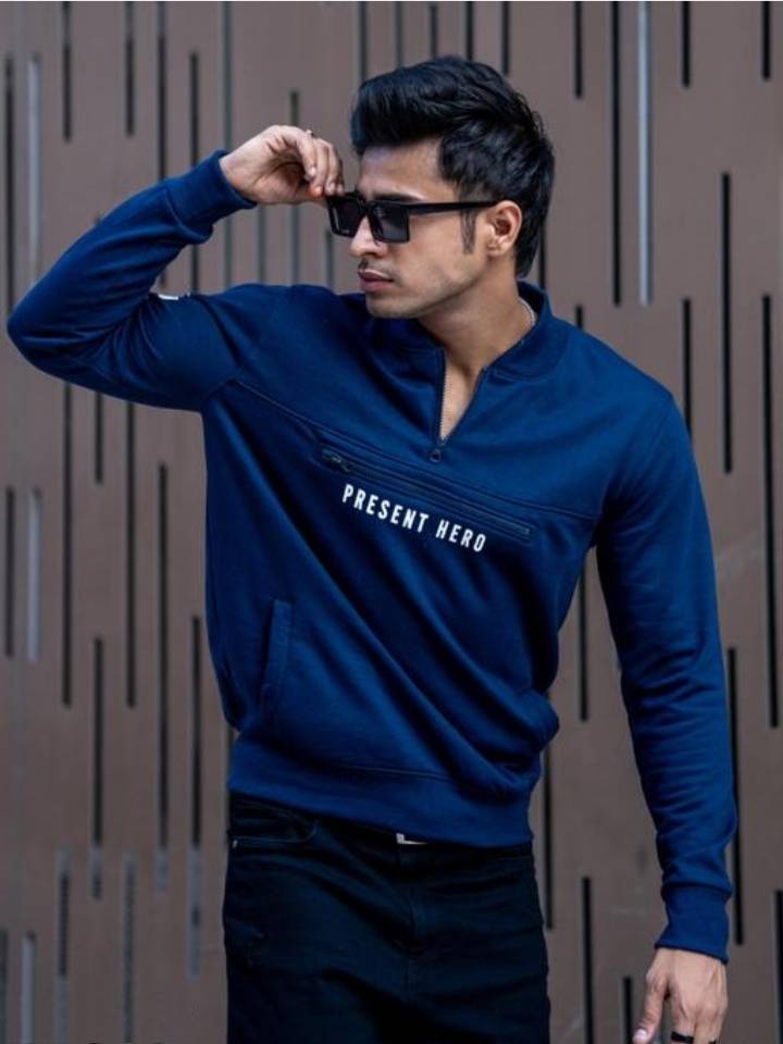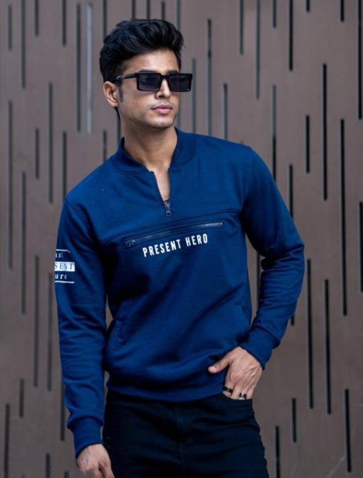 MANIAC Men's Striped Mock Collar Blue Jacket Fabric: Cotton Sleeve Length: Long Sleeves Pattern: Striped Net Quantity (N): 1 Sizes: S, M, L
