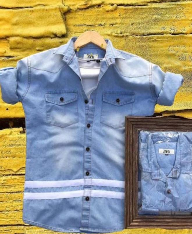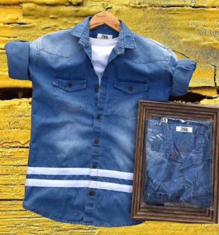 Shirt for men Fabric: Denim Sleeve Length: Long Sleeves Pattern: Dyed/ Washed Net Quantity (N): 1 Sizes: M (Chest Size: 38 in, Length Size: 27 in) L (Chest Size: 40 in, Length Size: 28 in) XL (Chest Size: 42 in, Length Size: 29 in)